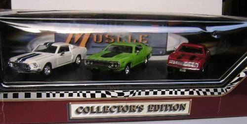 Road Legends Diecast Model Car Set , 3 piece , Ford Mustang , Plymouth GTX , Chevy Camaro , 1/43 scale , new in pack