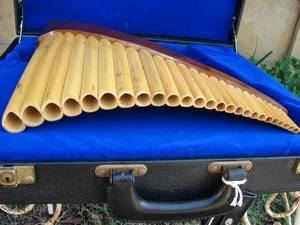 Case measures 52cm x 46cm and pipes 43cm x 38cm. Note some cracks in the lamination only, not on the pipes. Starts on C note and has 4 octaves of C with 26 pipes.
