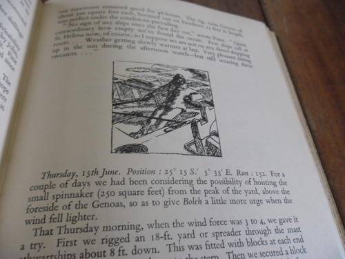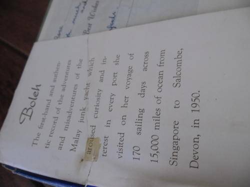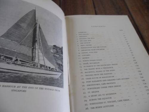 Illustrated by the author with plan of yact with Authentic record of adventures and misadventures of Malay junk yacht which aroused curiosity and interest in every port she visited on her voyage of 170 sailing days across 15,000 miles of ocean. With list of dry provision requiremens.