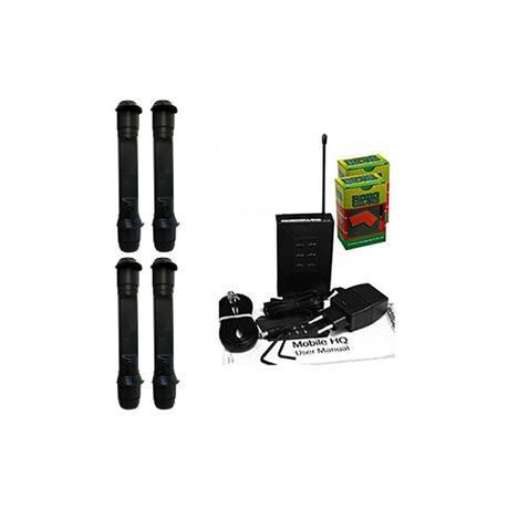 1 x HQ (Base Station): A portable 8 zone, 4 output, base-station used to receive and announce signals from up to 8 Roboguard Sensors. The HQ can also be wired to a siren and/or an up-line alarm panel. Arm/disarm with a roboguard remote.