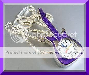 ROCK CHIC PURPLE GUITAR PENDANT WATCH ON A SILVER CHAIN