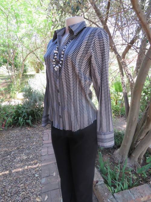 High quality monochrome long sleeve top from ITALY by PAPER WHITE with V neck . Size 32