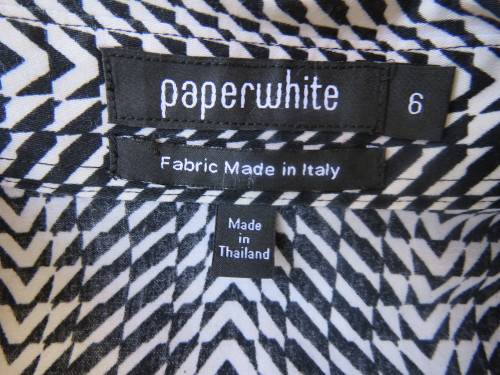 High quality monochrome long sleeve button down top with v and collar by PAPER WHITE. Fabric from Italy. Made in Thailand. Wide sleeve cuffs 100%  cotton. New condition. Size 32/8