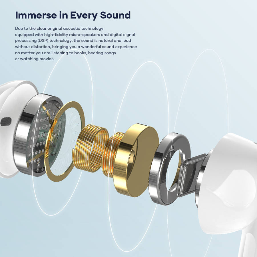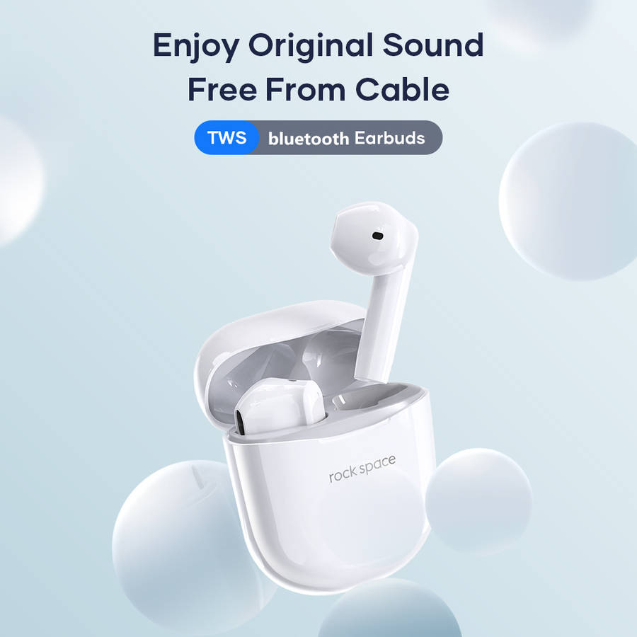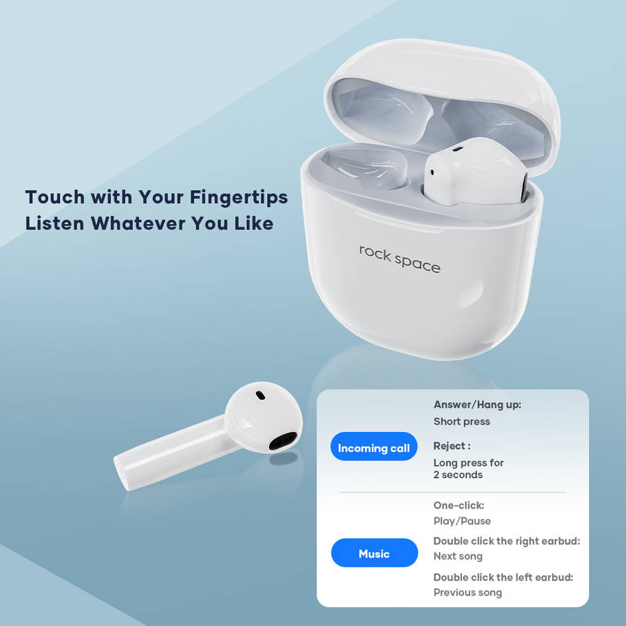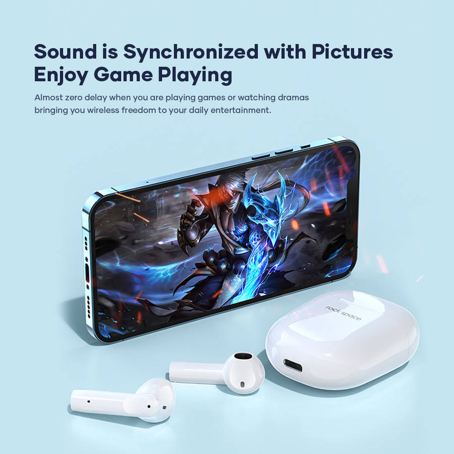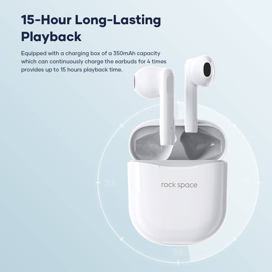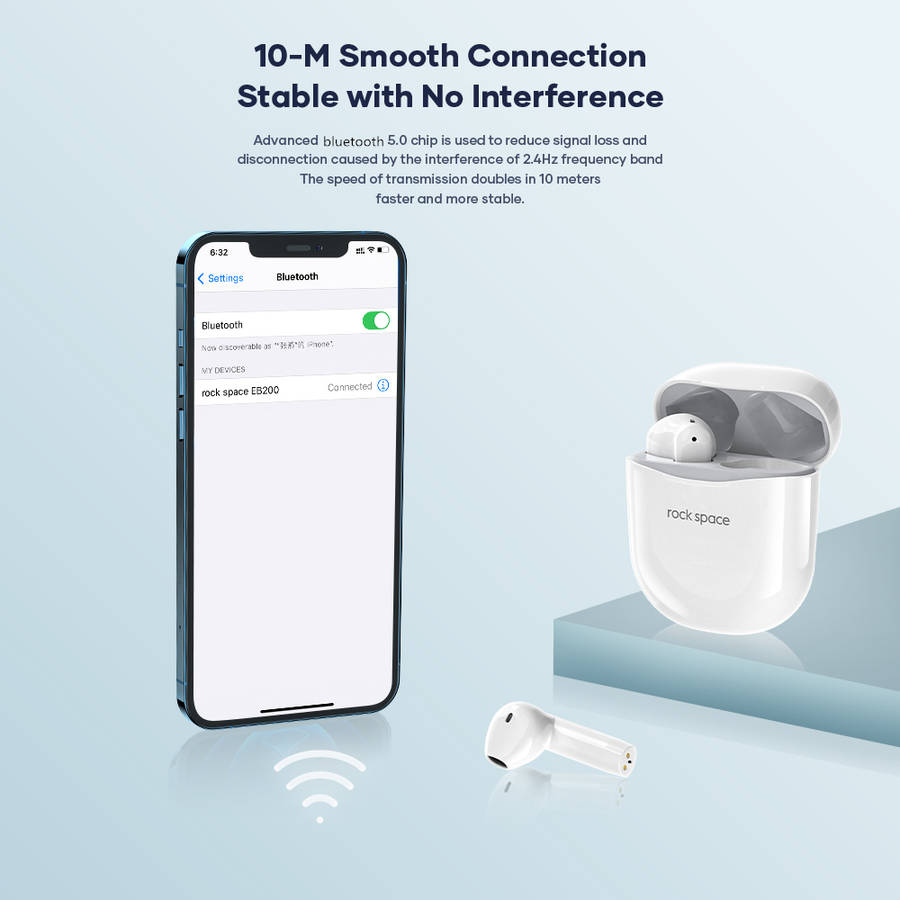 ROCK EB200 bluetooth 5.0 TWS Earbuds 15h Battery Life Hifi Sound Gaming Wireless ... (COLOR.: WHITE)