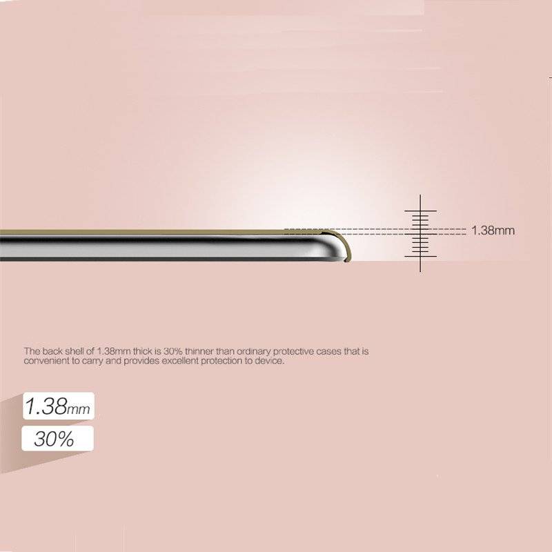 Features: With ultrathin and ultra-light design, it feels comfortable in hand The back shell of 1.38mm thick is 30% thinner than ordinary protective cass The cover with minimalist radial design can stransform into a pagoda stand that convenient for video entertainment With intelligent sleep and week up function Exquisite and accurate design on the hole sites makes it look high-end and elegant