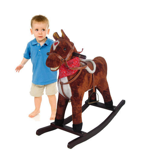 These Rocking Animals are a high end line of plush animals set on a wooden rocker.