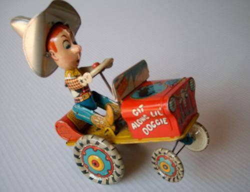 It is in good condition and still works, although after nearly 70 years the spring is obviously not what it used to be and Joe sometimes needs a little nudge to get down from his reared-up position. The paintwork is near perfect. A slight scuff on the back of his head where his stetson gets thrown back and the inside of the rear right wheel has a slight scuff from the wound-out spring. From what I have seen these are pretty standard.