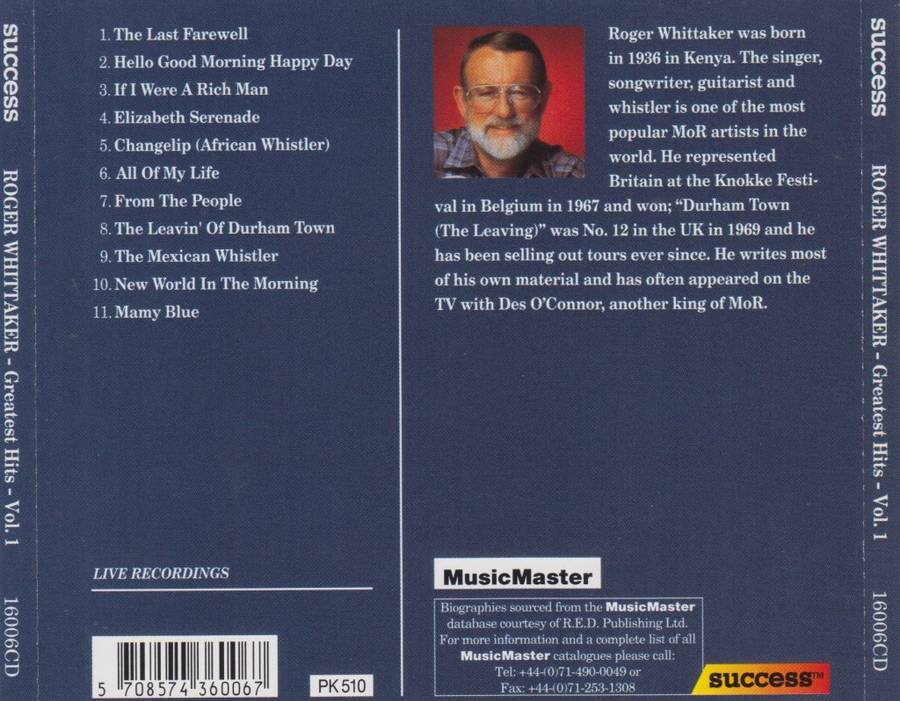 Roger Whittaker - Greatest Hits : Vol. 1 Live (CD)