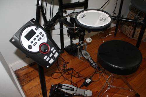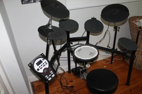 This Kit is in excellent condition, one year old and hardly been used. The owner decided to go for the Oboe instead! It comes complete with Mapex bass drum pedal and Mapex Drum throne as well as all the instruction booklets and CD. I have taken quite a number of pictures to show the how well kept the drum kit is..