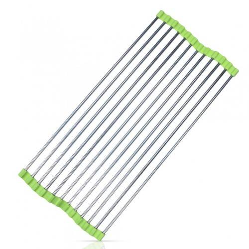 * Features - This unique stainless steel drying rack rolls out to fit neatly over your standard sized kitchen sink.