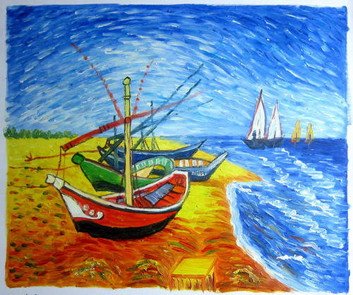 Rolled Hand-painted Canvas Signed Oil Painting 60CMX50CM Van Gogh repro Fishing Boats VM86