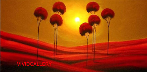 Rolled Large Oil Painting Hand-painted Canvas 120cmx60cm Modern Landscape Red Trees ABL003