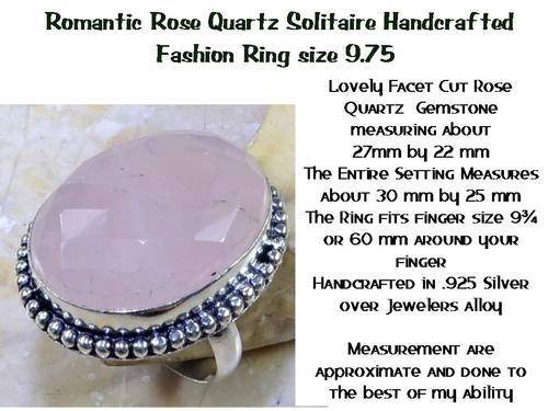 Romantic Rose Quartz Solitaire Handcrafted Fashion Ring size 9.75