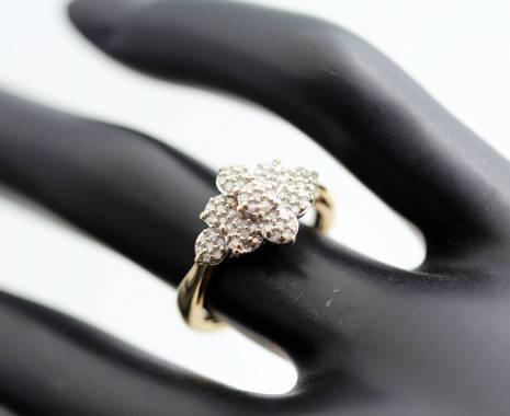 EXQUISITE DIAMOND FLORAL CLUSTER 9CT YELLOW GOLD RING. 63 DIAMONDS! *JEWELLER'S EVALUATION R10'721*