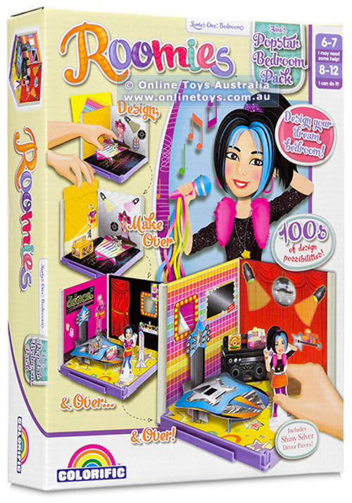 Join Ava and help create her Popstar bedroom pack! Get started by decorating Ava's rockin' bedroom with basic room fittings. Add flair by styling the space with starlet themed furniture and decor! Make-over by trying new design combinations or help Ava complete design challenges! Collect all 4 friends and their themed rooms to start building your Roomies community! Discover new designs: new wallpapers, floorings, removable stickers. You can assemble all the rooms to create bigger rooms!Â