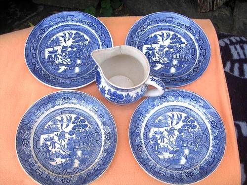 Rorstrand, vintage collectable 4 plates (23cms) and milk jug height (13cm,has no id marking. Have marks and jug has crack at the top, see photo`s. Please contact me with any questions before bidding via BoB Q & A.