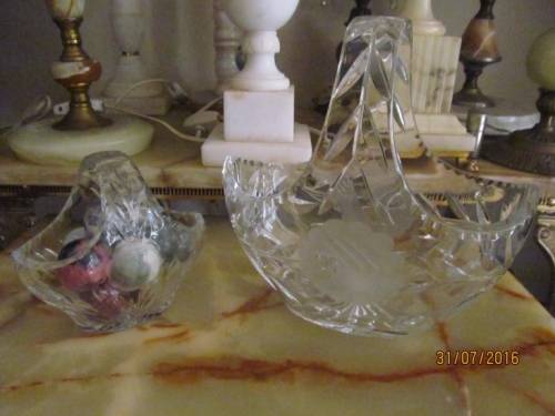 SMALLER BASKET - 14cm length...............8cm width................13cm height with handle................0.6cm thick crystal