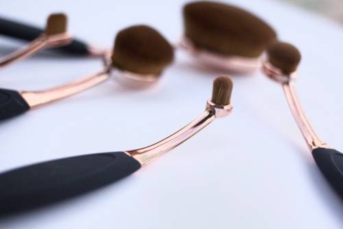 Absolutely stunning rose gold mermaid/oval brush set. This is a 10 piece set to cover all your needs from powdering to foundation and eye makeup.