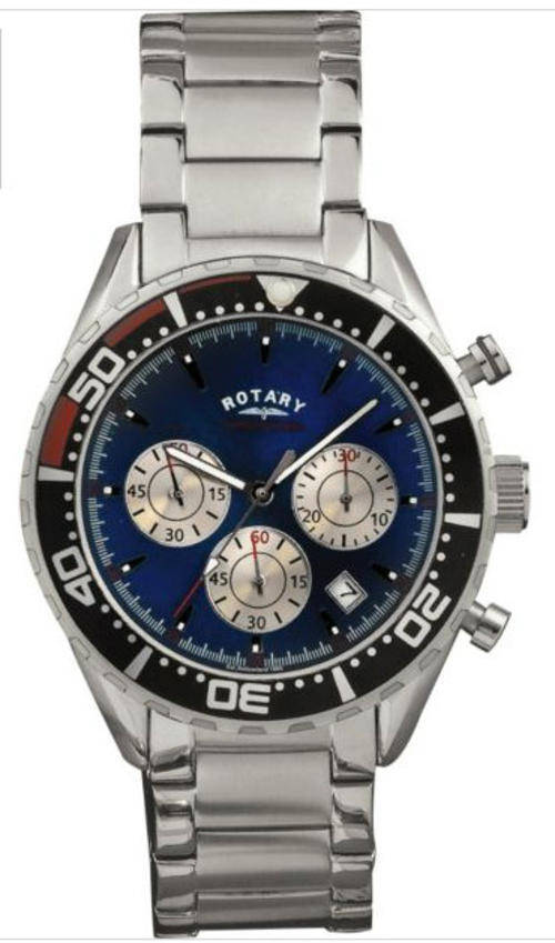 Rotary Men's Sports Blue Dial Chronograph Watch S/S Bracelet