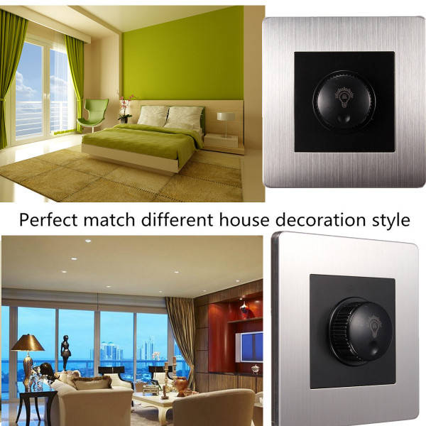 Features: 1.Rotary Dimmer 2.Adjusts light brightness according to your favor 3.Dim the lights to save electricity and extend bulb life 4.Equipped with a user-friendly knob 5.Dimming can be achieved quickly and easily 6.User can transfer the light to appropriate brightness according to actual needs 7.Switch Type: Knob 8.Supply Voltage: AC 110V-220V 9.15w-300w 10.Size: 86mmx86mm 12.Material: PC Flame-resistant material+Stainless steel