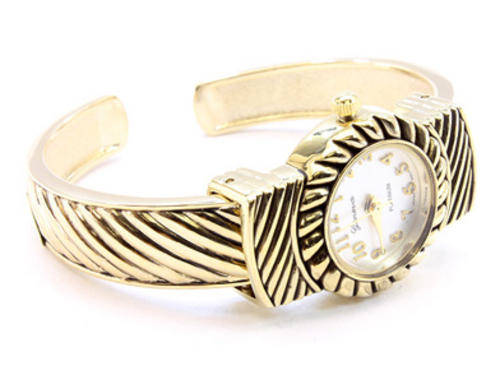 ROUND FACE GENEVA PLATINUM LADIES CUFF WATCH - LARGE NUMBERS ON FACE
