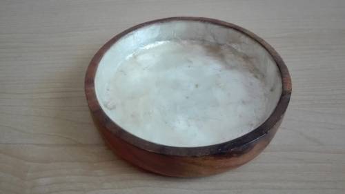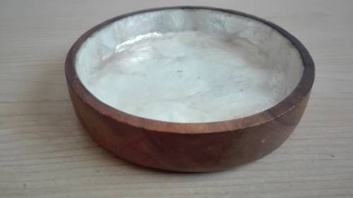 Round Handmade Wooden Bowl (Made in Phillipines). size: width 12cm. height 3cm.'