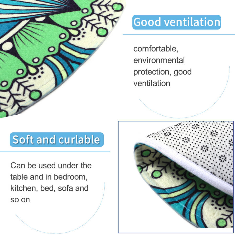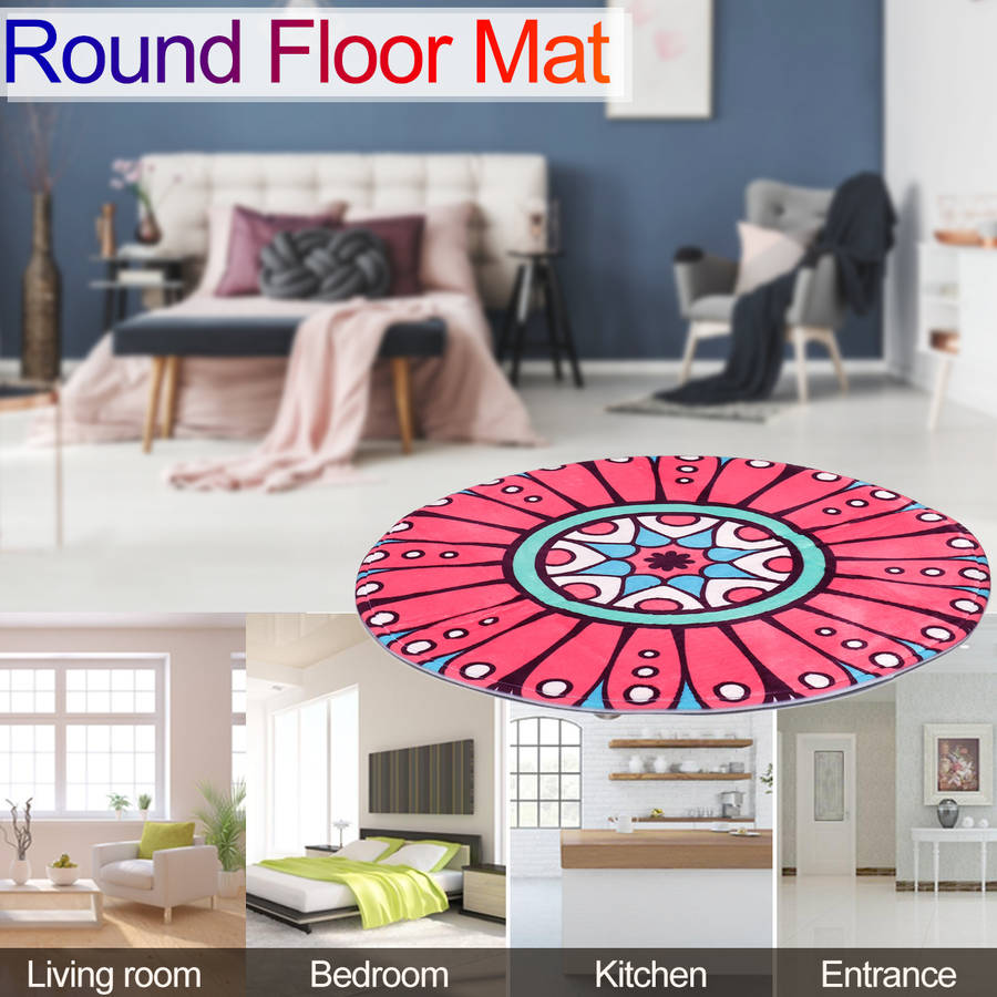Specifications: Material: Polyester, PVC Color: As Shown Pattern Type: Printed Style: Modern Weight: 188g Thickness:Approx.0.5cm(0.19'') Size: Approx.60cm*60cm(23.62''*23.62'') Features: a Bright painted, never fade a PVC mesh bottom, non-toxic, odorless, not moldy, non slip. a Firm stitches, durable a Easy absorb water and dust, good slip resistance a Easy to clean, can be directly washed by washing machine or hands, not shed and fade, the back avoid to direct sunlight a High density super soft fabrics, comfortable, environmental protection, good ventilation. a Can be used under the table and in bedroom, kitchen, bed, sofa and so on. a Add a festive life and personality to any space! a Hand wash: Soak in water 10 minutes, then add the detergent or laundry detergent a They are a fun,easy and removable decor solution. a Simply peel them off and reapply to wherever you want and they won't damage your paint or leave any mess Package Included: 1 x Round Floor Mat