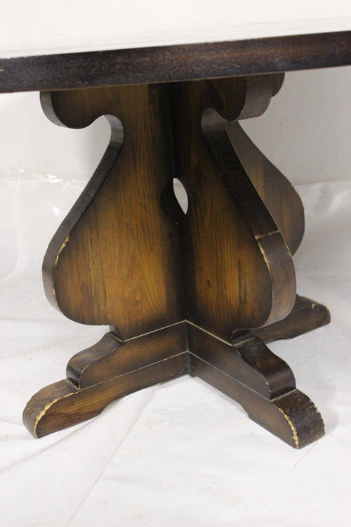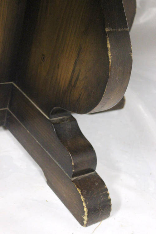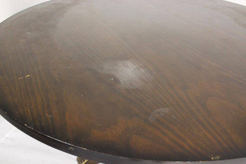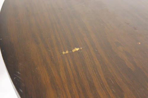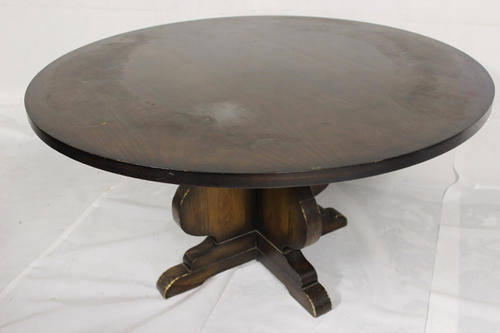 Round wooden table Looks like its made from pine - nice and solid and sturdy Condition The top will need some attention as it is scratched and has |