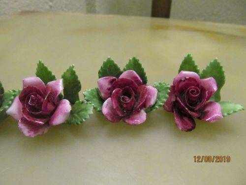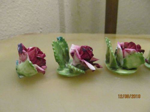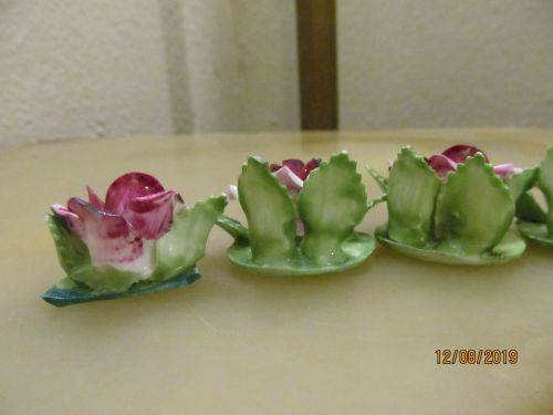 CONDITION : ONE ROSE HAS LOST THE TWO LEAVES WHICH FORM THE CARD HOLDER WHILE ANOTHER HAS TWO REPAIRED PETALS (PAINTED - PLS SEE PICS BELOW). ASIDE FROM THIS THE ITEMS HAVE NO OTHER DAMAGES, CHIPS ETC OF ANY KIND