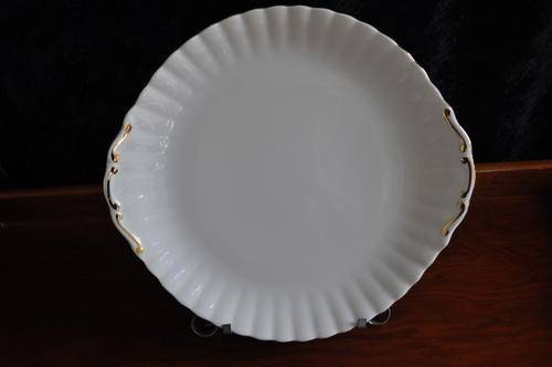 Cake plate measures 26,5cm handle to handle and 24,5cm in diameter.