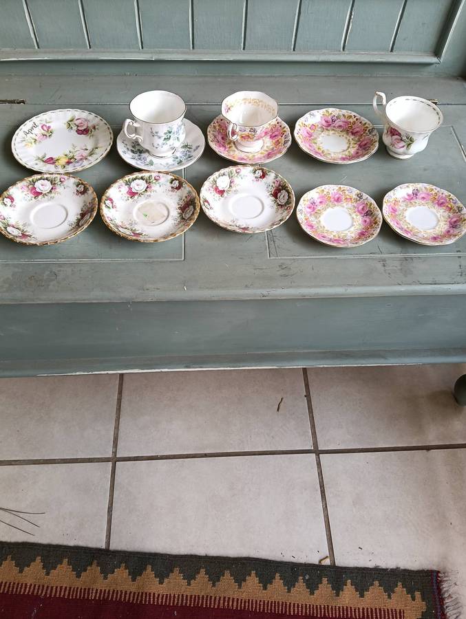 AND THERE ARE TWO "ROYAL ALBERT" CUPS AND SEVEN SAUCERS AND ONE CAKE PLATE.