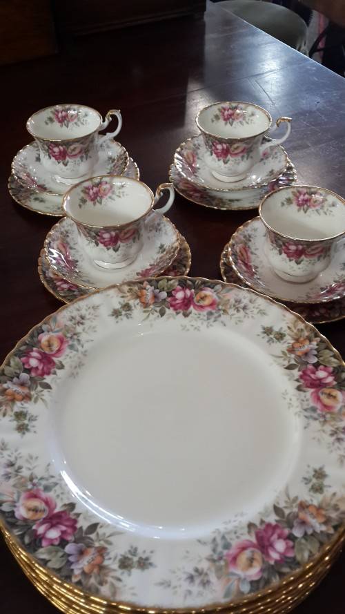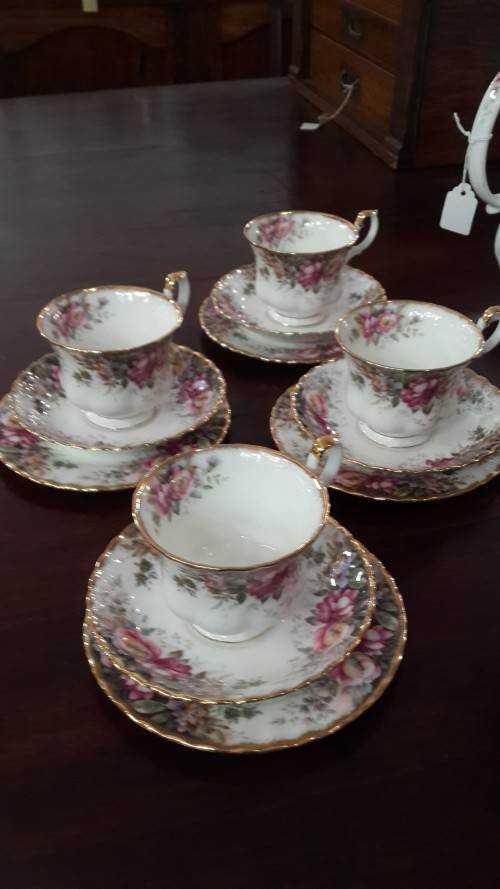 8 x Trio's: Weight: 432g, Cup: Rim Diamater: 9cm, Height; 7cm, Saucer Diameter: 14cm, Plate Diameter 16cm (of 1 trio)