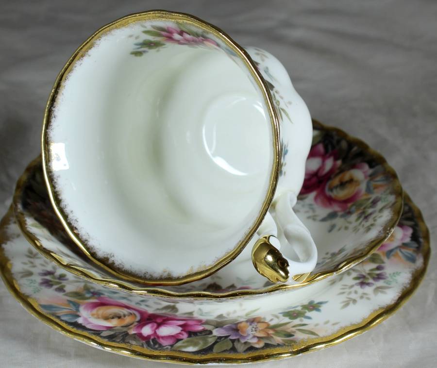 This set has a cup (7.5cm high), a Saucer (14cm in diameter) and a side plate(16cm in diameter).