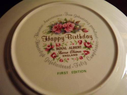 ON OFFER I HAVE ONE ROYAL ALBERT FIRST EDITION "HAPPY BIRTHDAY" COLLECTORS PLATE WITH GOLD TRIM EDGING - THESE ARE VERY SORT AFTER BY COLLECTORS AND ARE NOT OFTEEN FOUND UP FOR SALE. THIS PLATE HAS BEAUTIFUL COLOURS AND THE DESIGN IS SO PRETTY. THIS WOULD BE A PERFECT GIFT FOR THAT SOMEONE SPECIAL AS A BIRTHDAY GIFT .