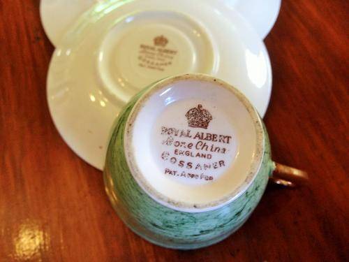 END OF ROYAL ALBERT CHINA-"GOSSAMER" SERIES TRIO IN GREEN-LISTING