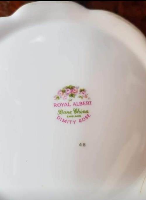 Royal Albert , "Dimity Rose" Teapot. 6-8 cup size. Good condition except for a hairline crack on the one side as shown in photo and which is not visible on the inside of the teapot.