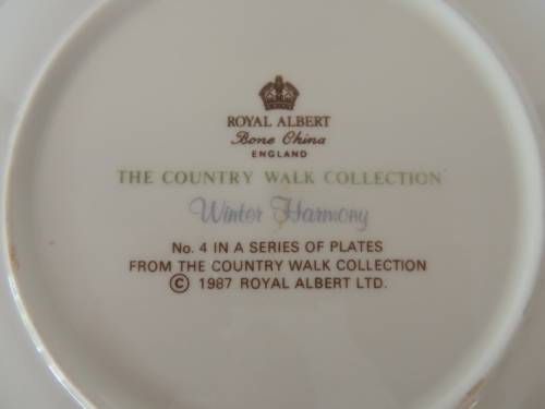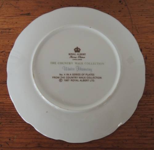 This plate is number four in the series from "The Country Walk Collection". The diameter is 21cm and the condition is good. There's a slight discolouration on the back - see photo number 4.