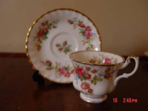 This gorgeousduo with gold rim on cup and saucer is intact and beautifully designed. Cup height 7.5cm cup diameter 9cm sucer rim diameter accross is 14.5cm