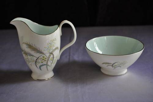 Milk Jug lip to handle11cm, 9,5cm in height. Sugar bowl 10cm in diam, 5cm in height.