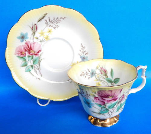 Royal Albert, Made In England, " Floral Harlequin " Yellow Duo Pattern Number 4376. Gainsborough Cup Shape. Both Cup and Saucer have fluted rims.