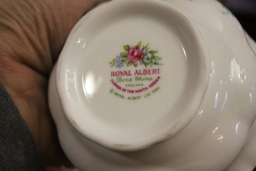 Royal Albert Flower of the Month Dimity Milk, Sugar, and Tray.