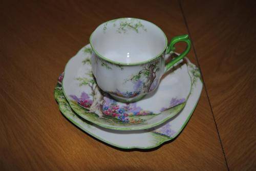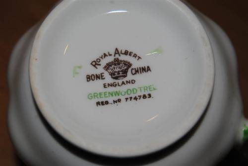 A Royal Albert Greenwood tree trio, in excellent condition - no chips or cracks. Please note the green edge of cups & saucers, no gilding. Postage will be R100.00 I have three trio's available at R380.00 per trio. Please contact me if you would like to purchase more than one trio.