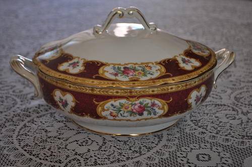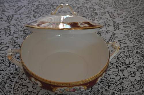 1 x Lidded Tureen 27cm handle to handle, 21cm in diam. 11,5cm in height.