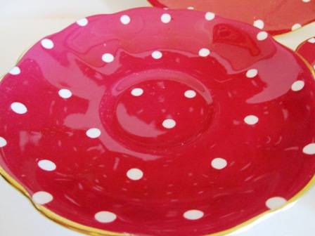 Royal Albert Maroon with White Dots Platter, Saucer and Side Plate