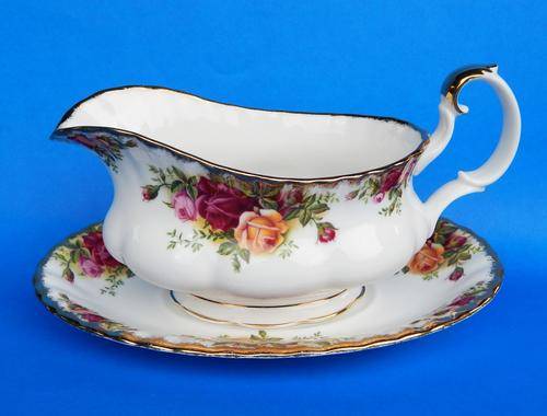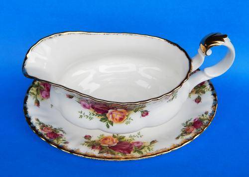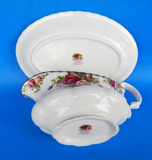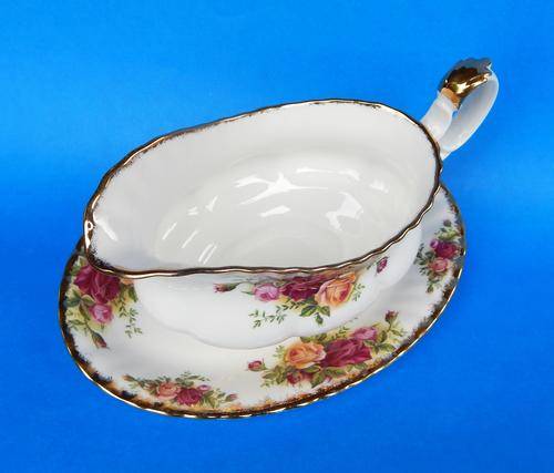 Royal Albert, Made In England, "Old Country Roses" Gravy/Sauce Boat With Tray.
