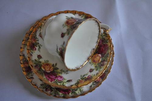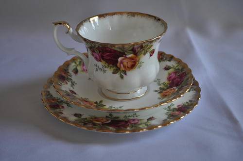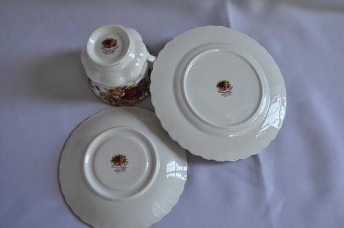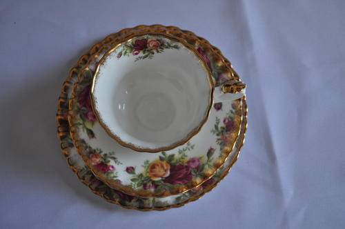 Measurements: Cup 7cm in height, 8,5cm in diam excl handle. Saucer 14cm in diam. Side plate 16cm in diam.