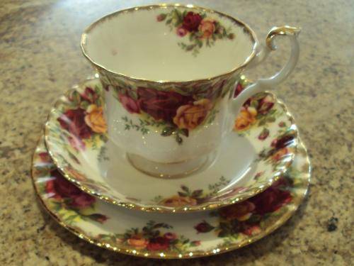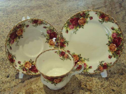 A SUPER, FIRST GRADE OLD COUNTRY ROSES TEA TRIO IT IS IN EXCELLENT CONDITION, NO CHIPS OR CRACKS. THERE IS A FEINT PATTERN SMUDGE INSIDE THE CUP BUT HAS NOT BEEN CONSIDERED ENOUGH TO GRADE AS A SECOND