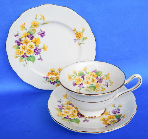 Royal Albert, Made In England, " Primulas " Trio. Avon Shaped Cup.