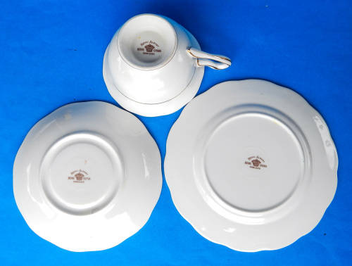 This Cup measures 12.0 cm handle to rim, 9.5 cm across the rim and 6.5 cm in height to rim, the Plate is 16.0 cm in diameter and the Saucer is 14.0 cm in diameter.