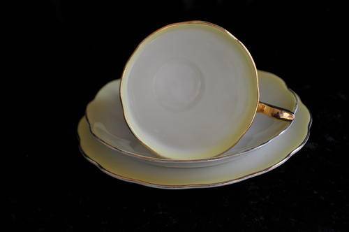 Measurements: Cup 8,5cm in diam, 7cm in height. Saucer 14cm in diam. Side plate 16cm in diam.